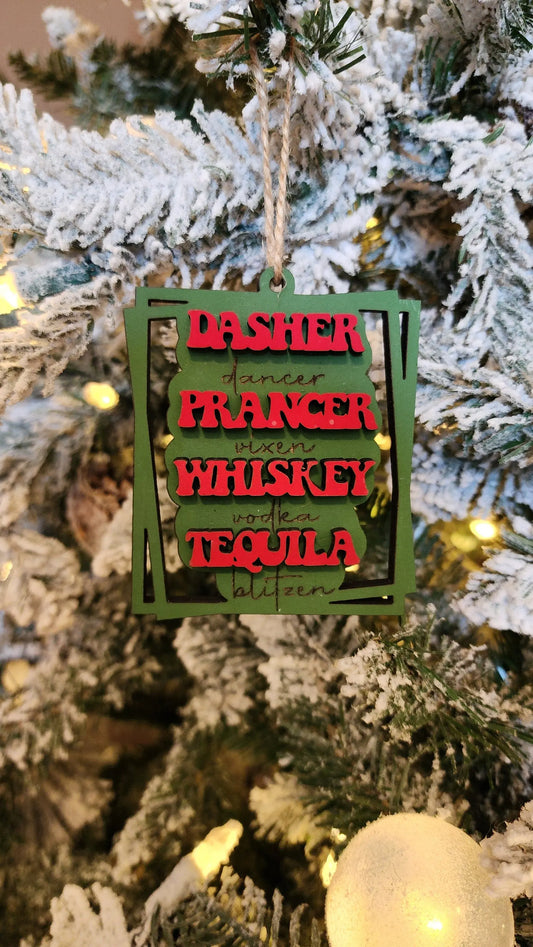 Dasher, Dancer, Whiskey, Tequila | Funny Christmas Ornament