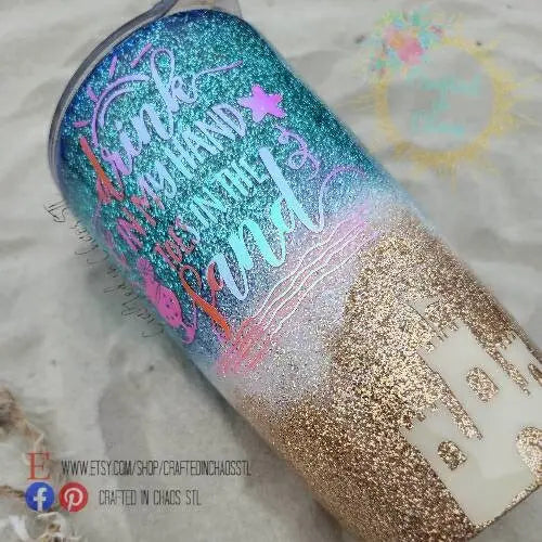 Drink in my Hands Toes in the Sand | Personalized Glitter Beach Tumbler