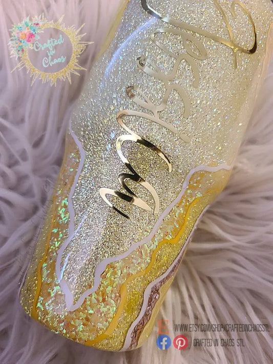 Yellow and Gold Geode | Personalized Glitter Tumbler