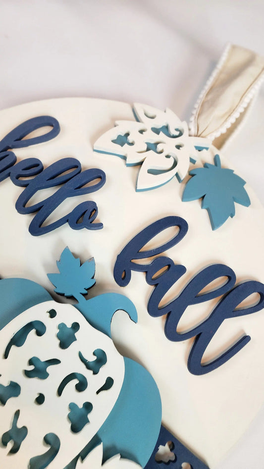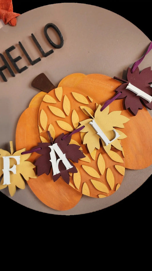 Hello Fall - Autumn Leaves Door Sign: Whimsical Fall Home Decor, Hand-Painted Wooden Sign, Seasonal Welcome Plaque, Harvest Festive Design