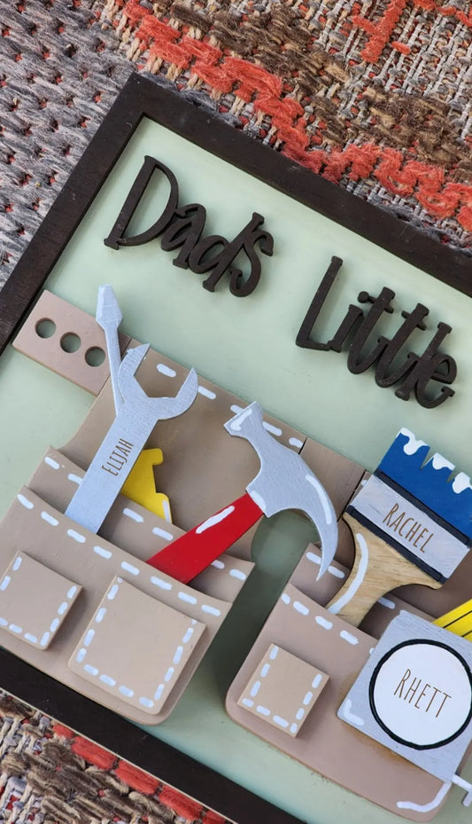 Personalized 3D Wooden Sign - Dad's Little Helpers - Tool Belt Design - Father's Day Gift - Framed sign - Dad Can Fix It